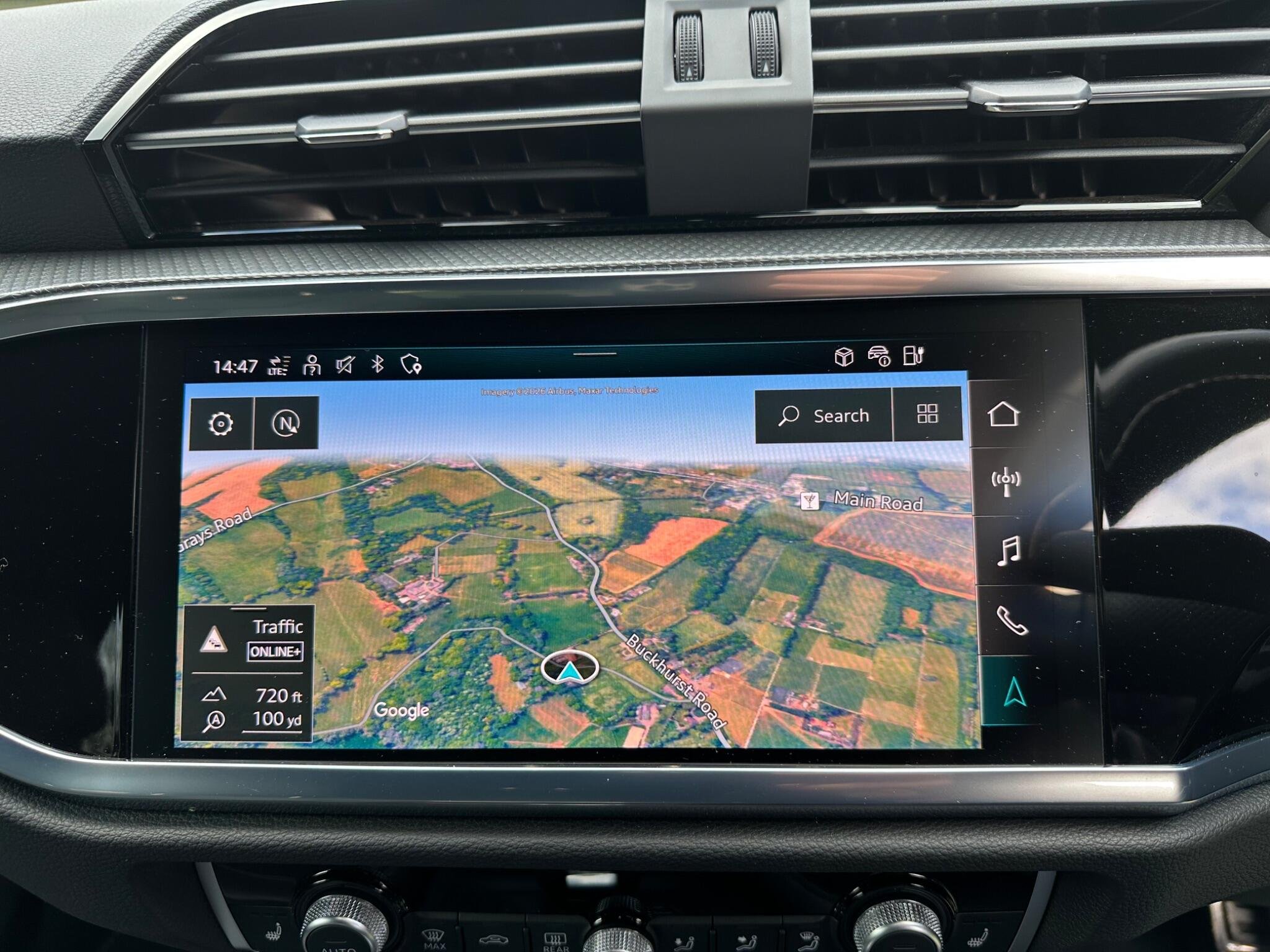 - Detail in Dashboard Around the MMI Touch Colour Display in Glass Look - Black with Surround in Aluminium Look