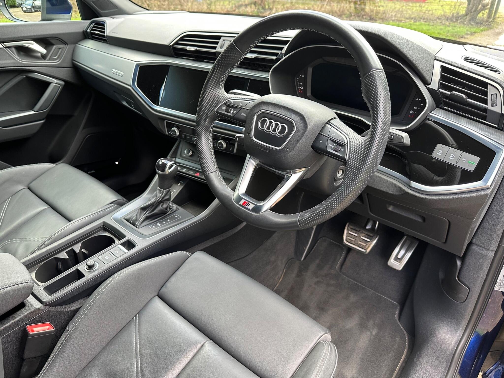 This STUNNING 1 OWNER Audi Q3 1.4 TFSIe 45 S line Sportback S Tronic Euro 6 5door 13kWh in Navarra Blue metallic. The car is in excellent condition and comes with a Full Audi Service History totalling x2 Services. The car was last Serviced in April 24, it has a new MOT with NO Advisories. It has a great specification that includes Black Leather Seats, 19in Twin Spoke Alloys, Comfort & Sound Pack, DAB, Audi Smartphone Interface includes Wireless Apple CarPlay, Audi Virtual Cockpit, Cruise Control, Heated Front Seats, MMI Navigation Plus with High Resolution 10.1in Touchscreen Colour Display, Bluetooth Interface, Privacy Glass, Folding Door Mirrors, Dual Zone Climate Control, Front & Rear Parking Sensors to name just a few.