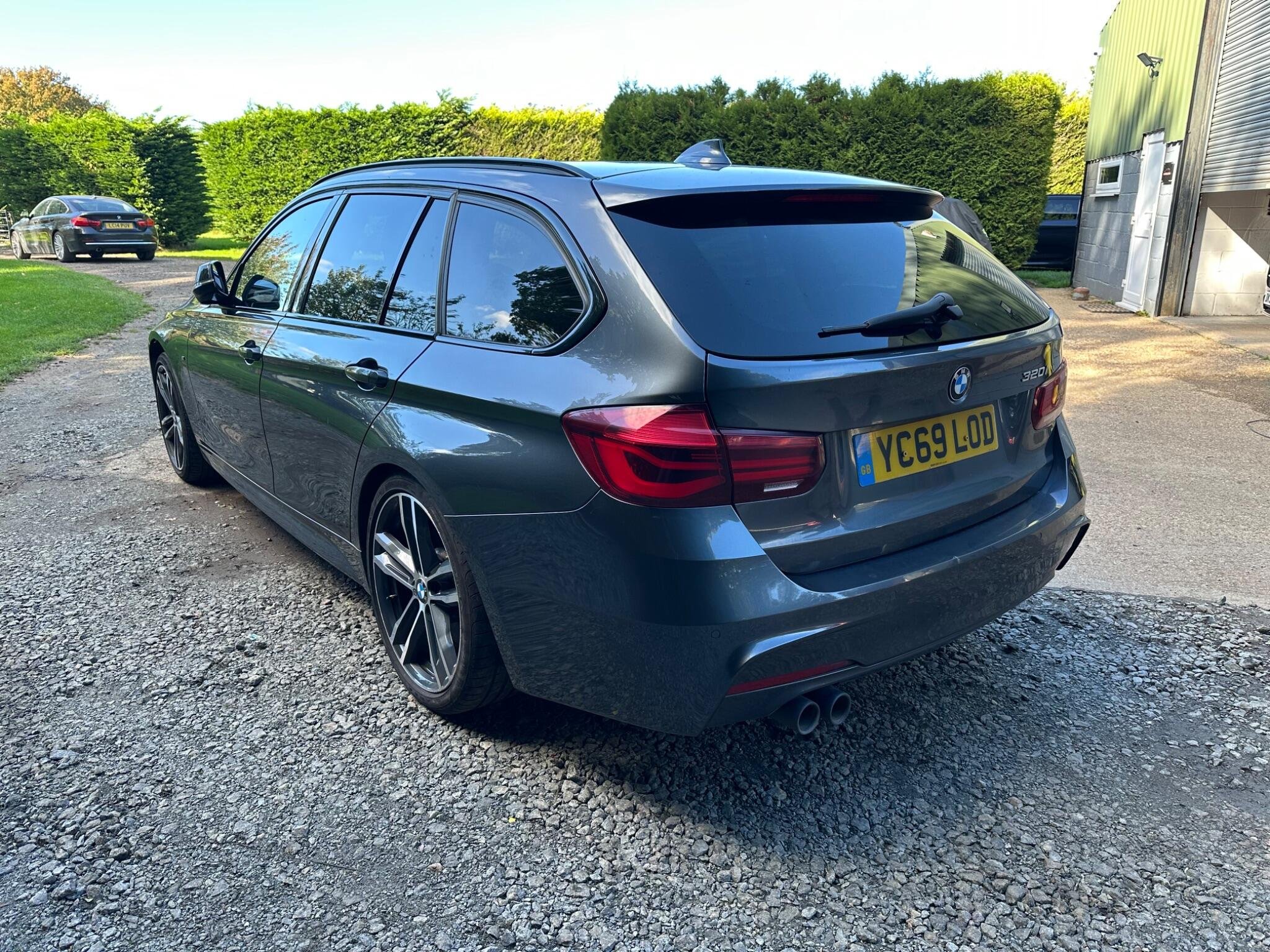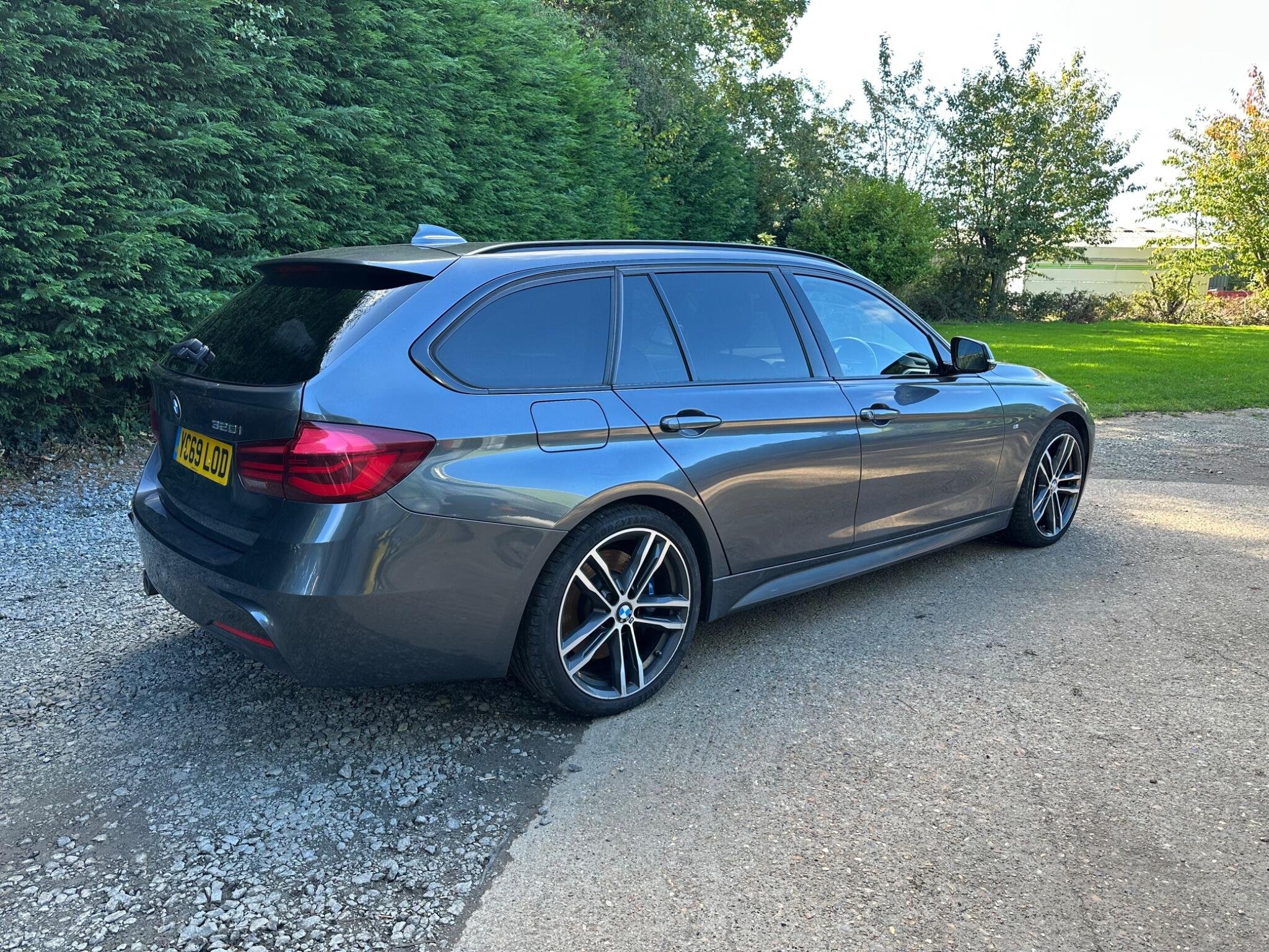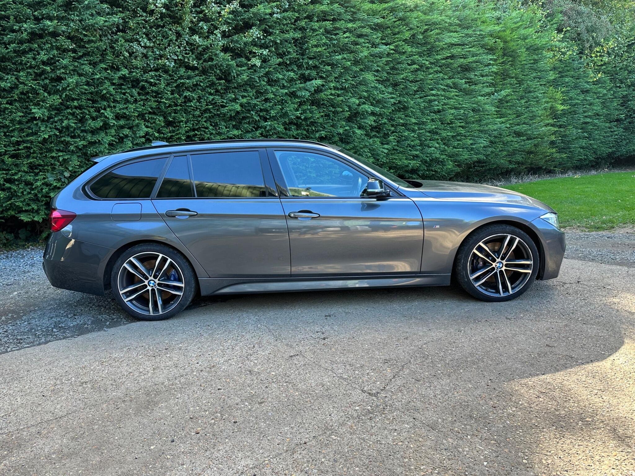 This BMW 3 Series 2.0 320i M Sport Shadow Edition Touring Auto Euro 6 5door in Mineral Grey Metallica.