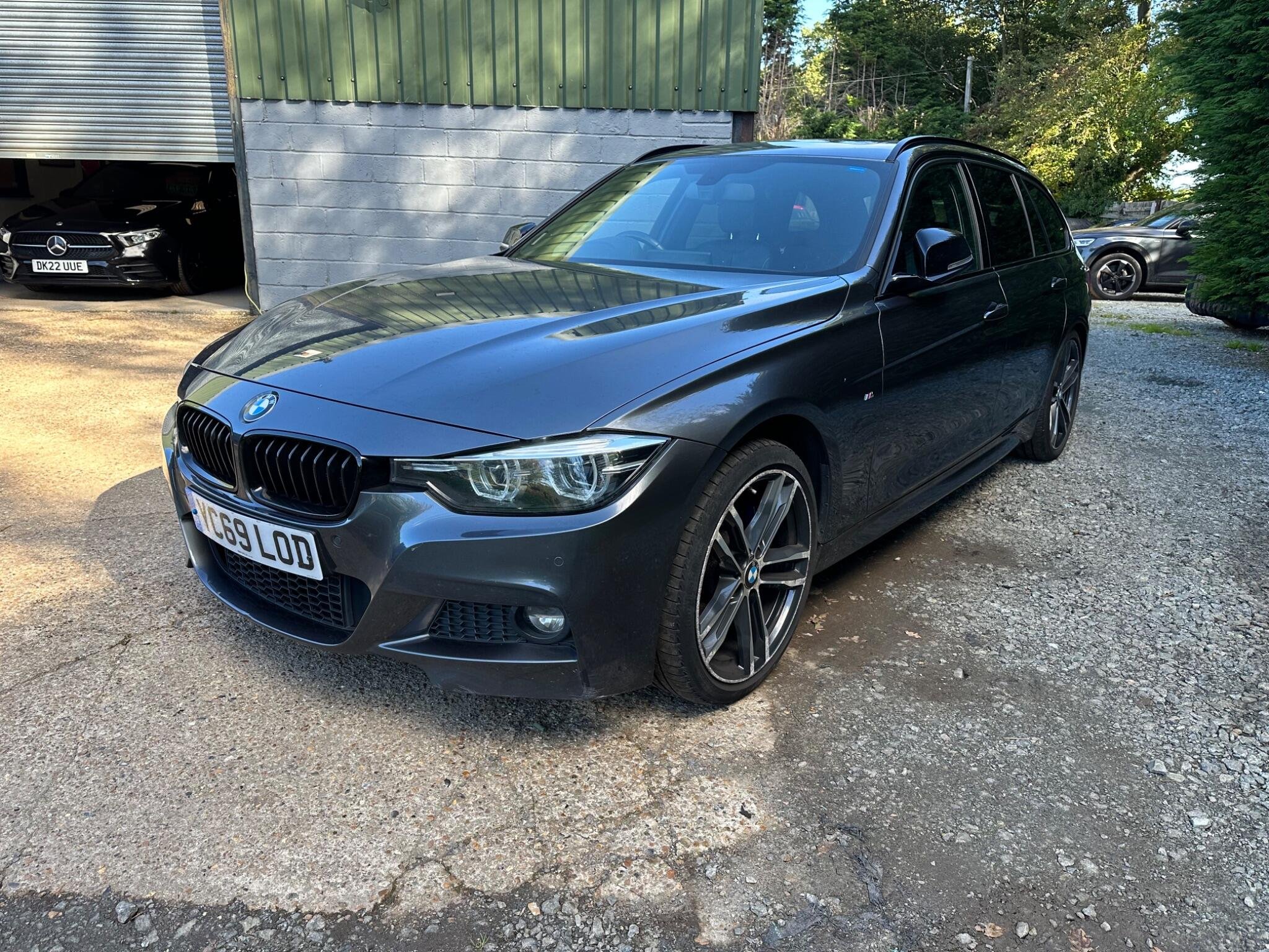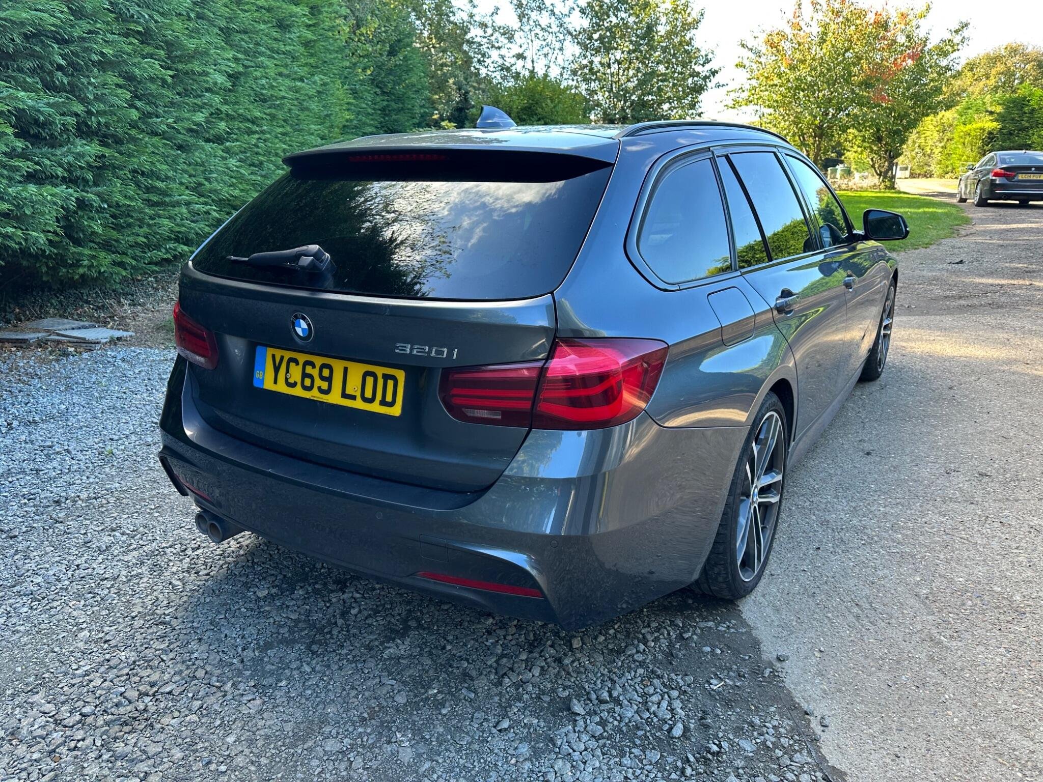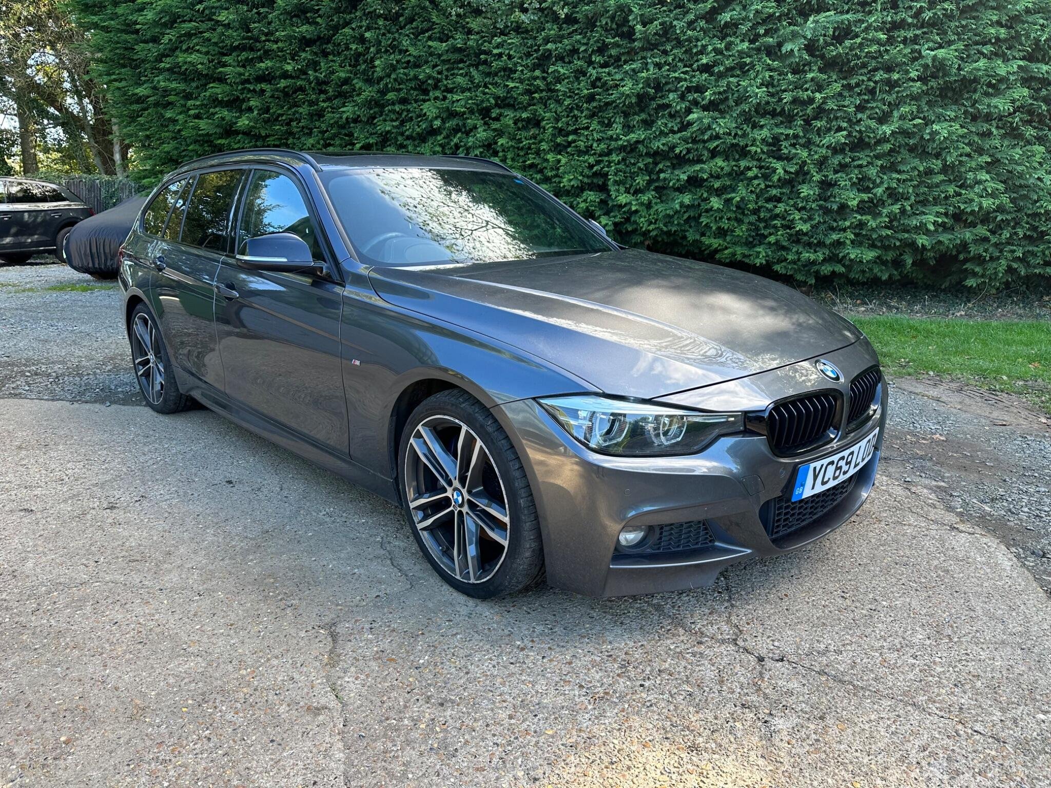 This BMW 3 Series 2.0 320i M Sport Shadow Edition Touring Auto Euro 6 5door in Mineral Grey Metallica.