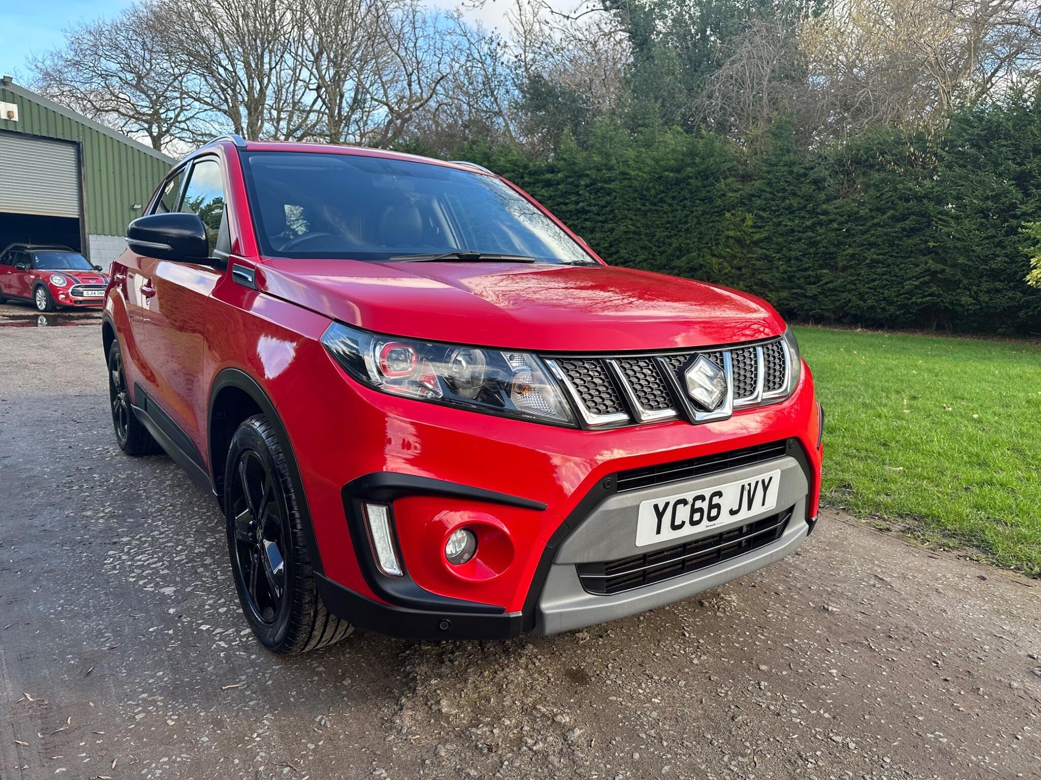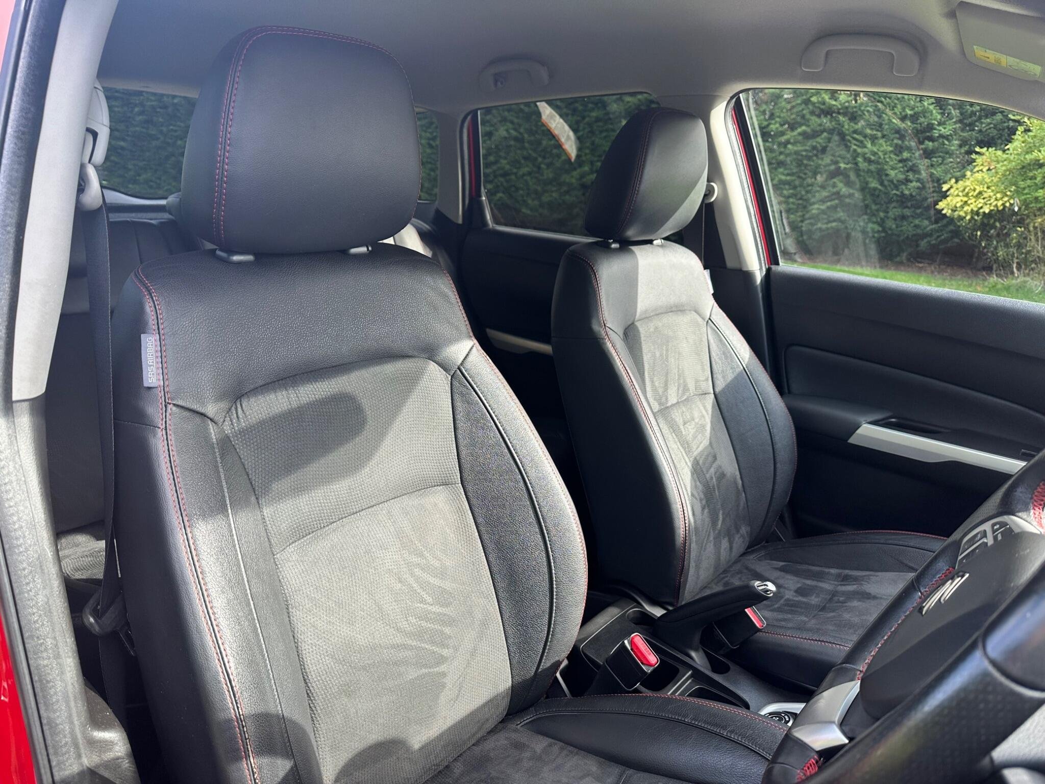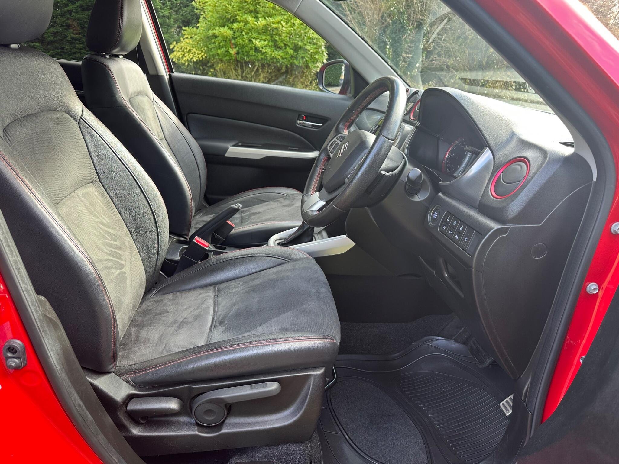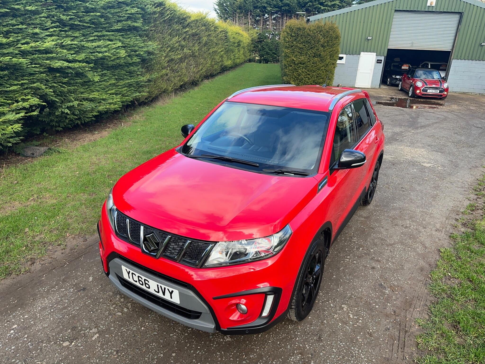 This LOW MILEAGE Suzuki Vitara 1.4 Boosterjet S Auto ALLGRIP Euro 6 5door in Solid Red. The car is in excellent condition and comes with a Full Service History totalling x8 Services. The car was last Serviced in June 25, it has a new MOT with NO Advisories (as the tyre has now been replaced). It has a great specification that includes Half Leather & Suede Seats, 17in Black Gloss Alloys, Rear Camera, DAB, Adaptive Cruise Control, Removable Towbar, Bluetooth, Hill Hold, Privacy Glass, Navigation, Air Conditioning, Rear Parking Sensors, Folding Door Mirrors, Keyless Start to name just a few.