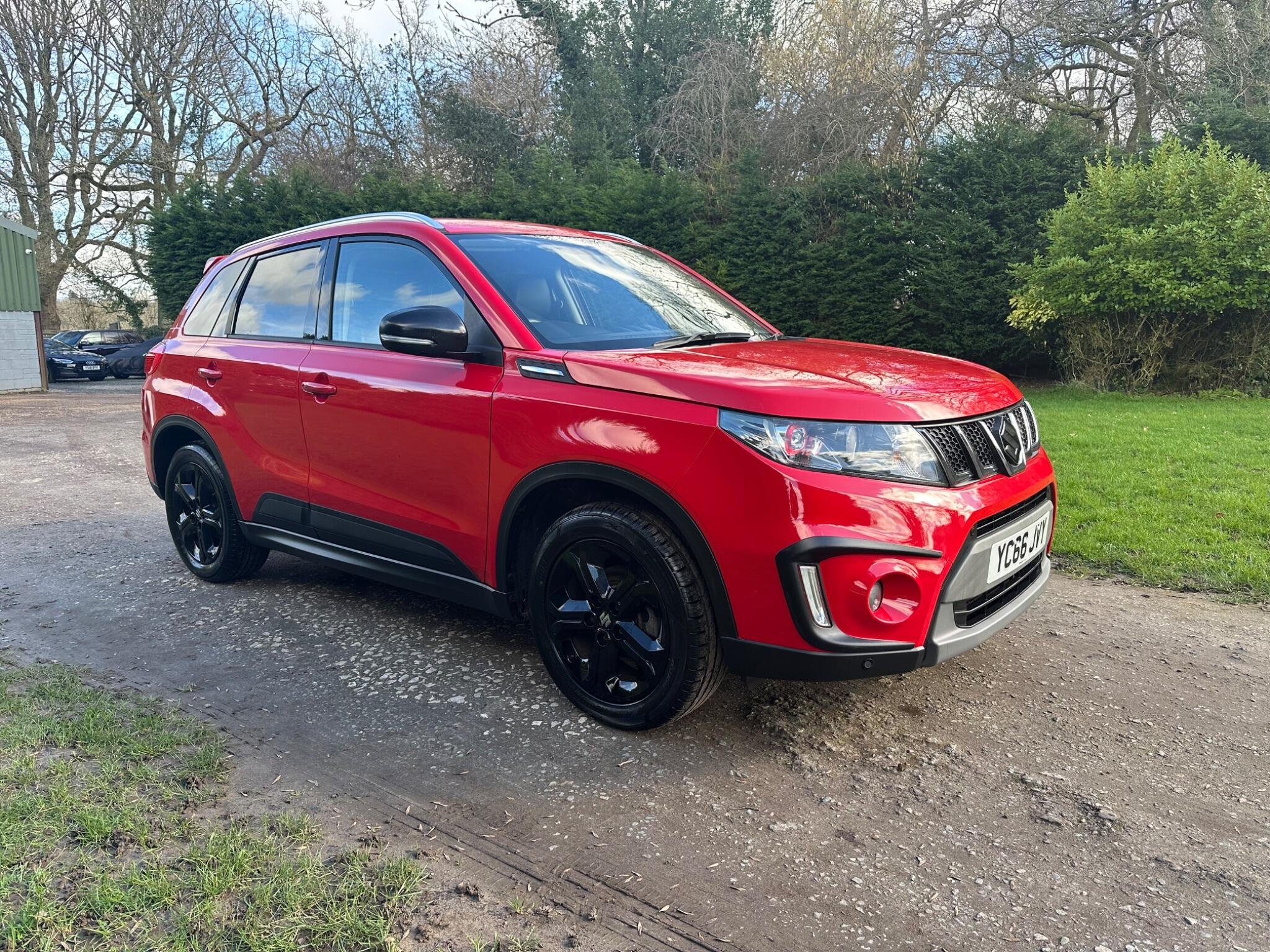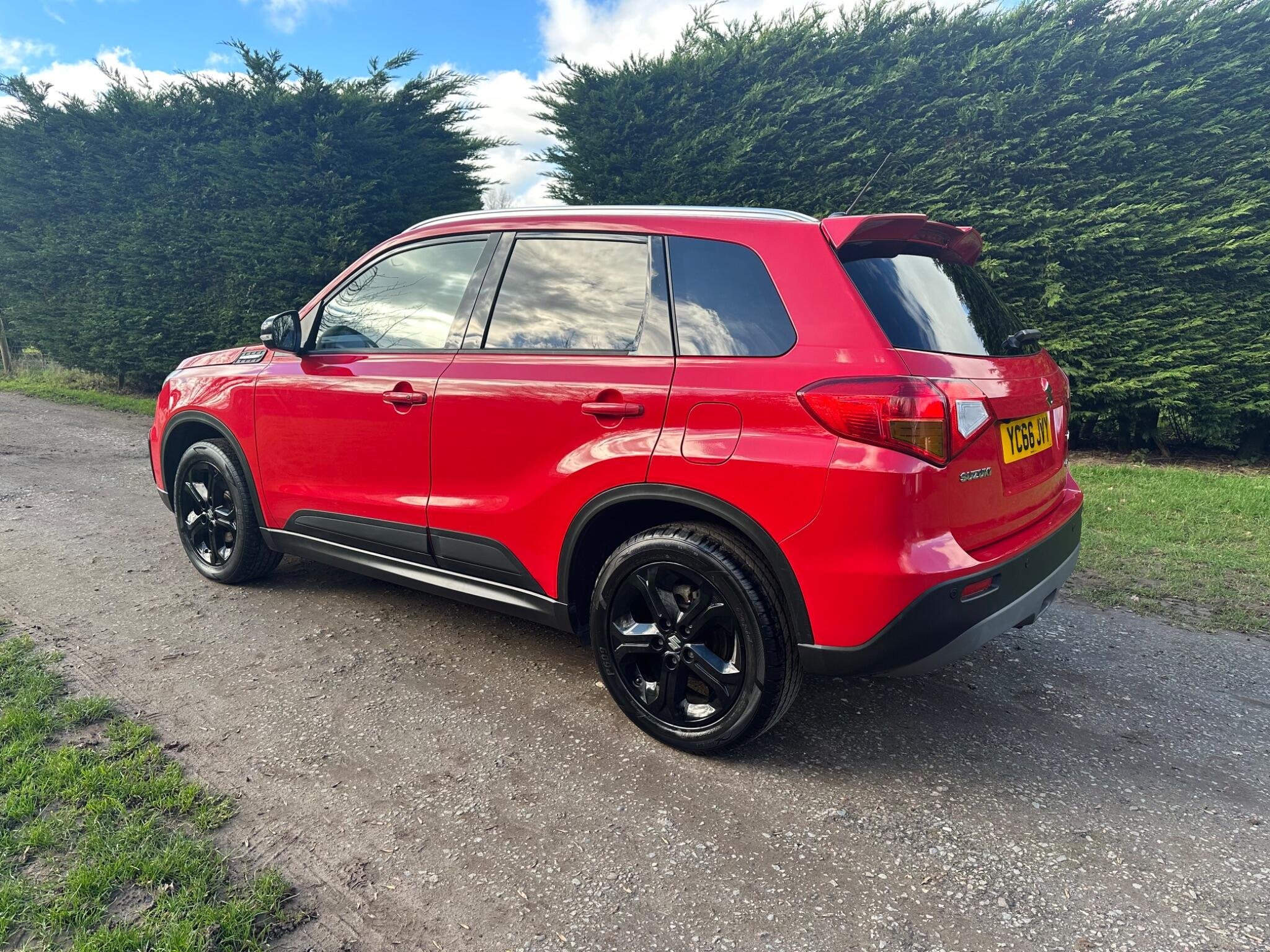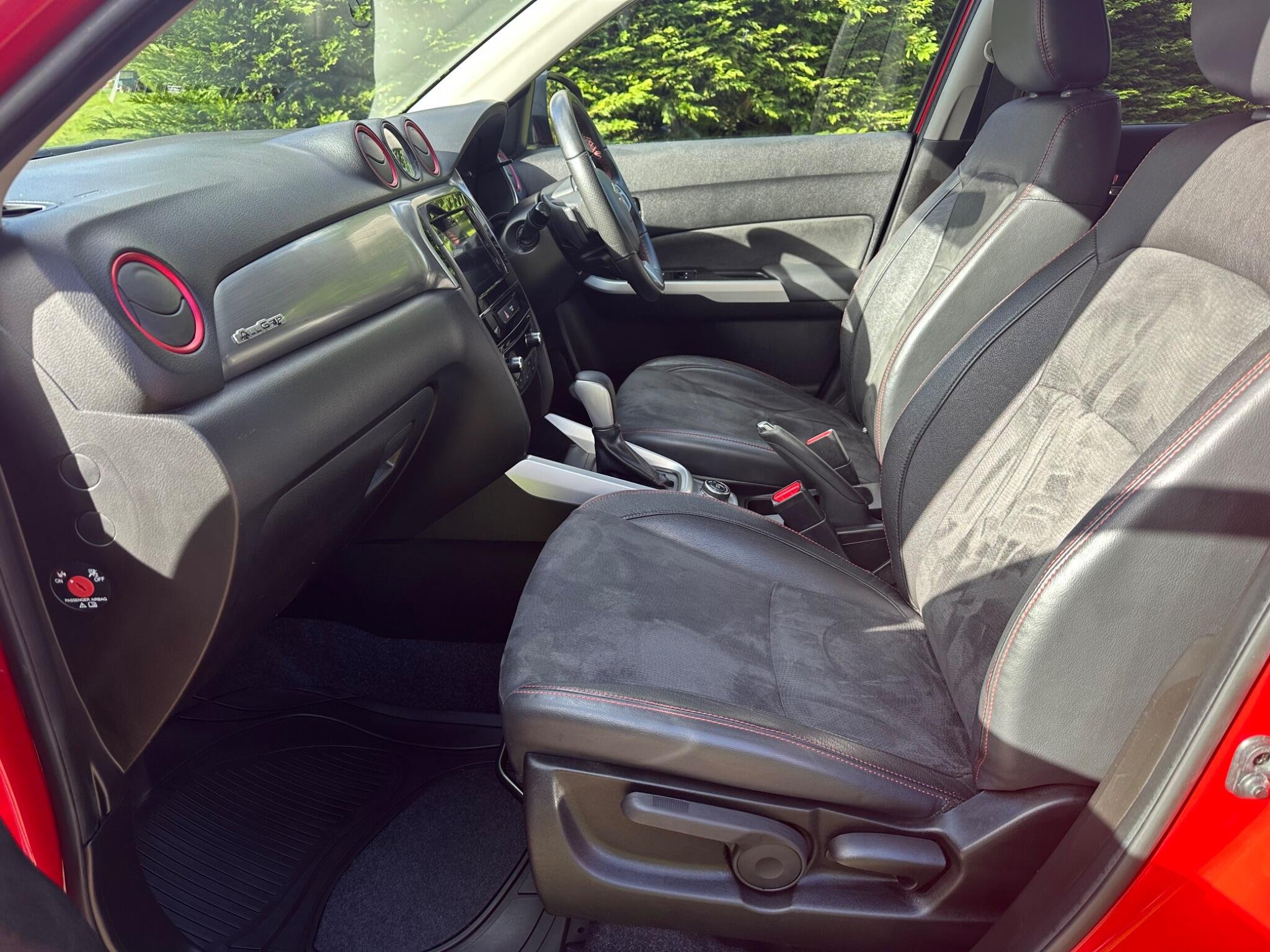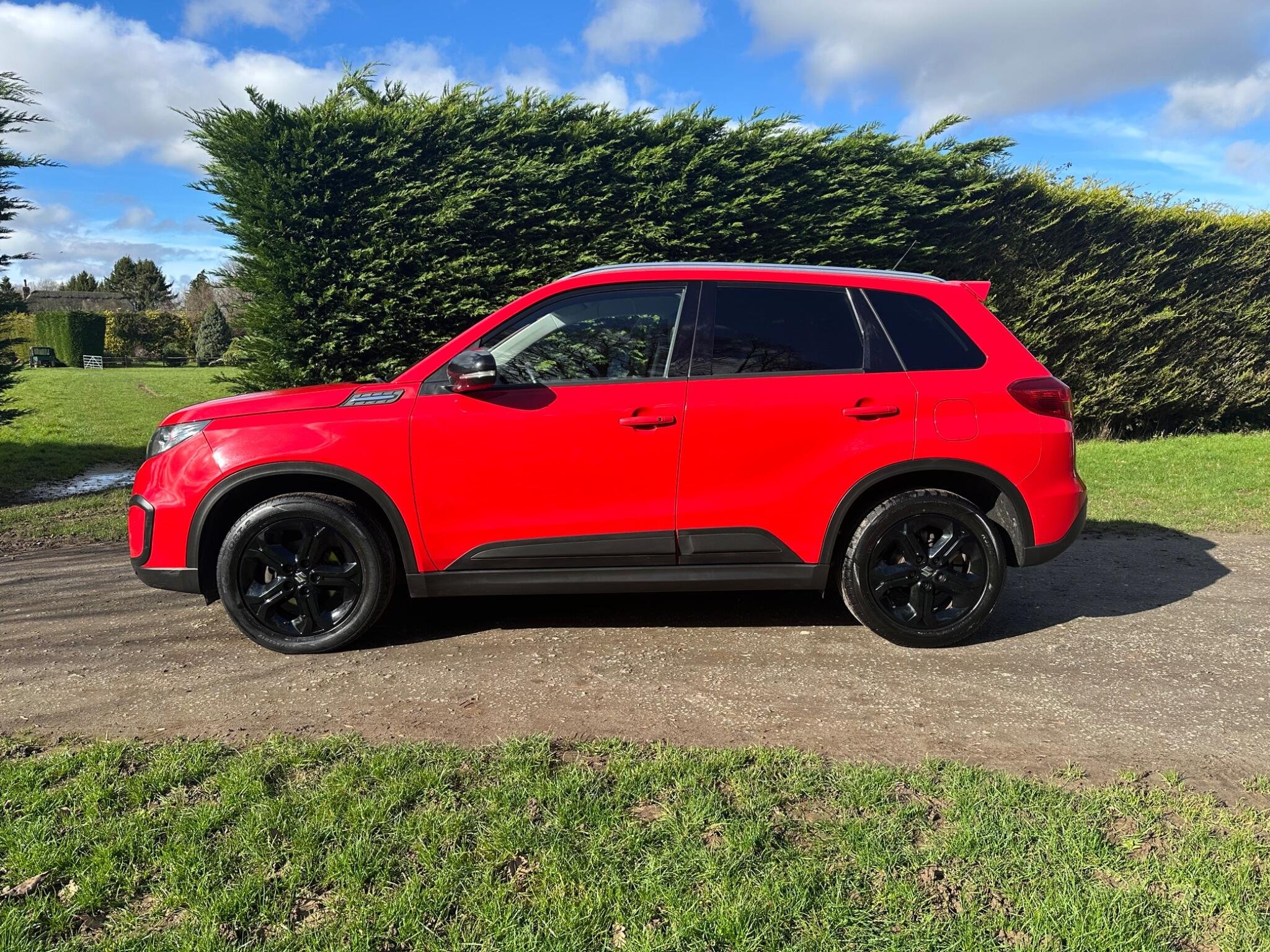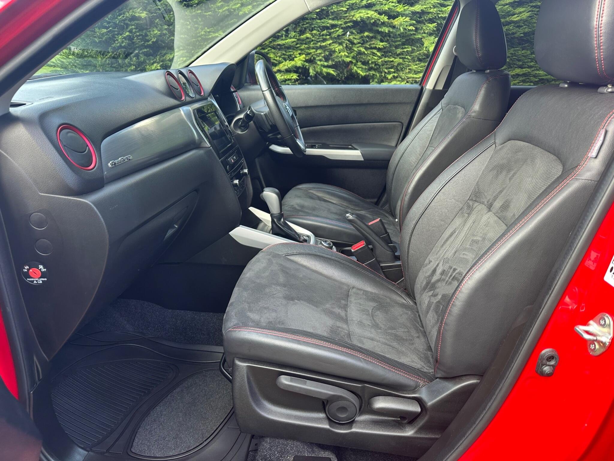 This LOW MILEAGE Suzuki Vitara 1.4 Boosterjet S Auto ALLGRIP Euro 6 5door in Solid Red. The car is in excellent condition and comes with a Full Service History totalling x8 Services. The car was last Serviced in June 25, it has a new MOT with NO Advisories (as the tyre has now been replaced). It has a great specification that includes Half Leather & Suede Seats, 17in Black Gloss Alloys, Rear Camera, DAB, Adaptive Cruise Control, Removable Towbar, Bluetooth, Hill Hold, Privacy Glass, Navigation, Air Conditioning, Rear Parking Sensors, Folding Door Mirrors, Keyless Start to name just a few.