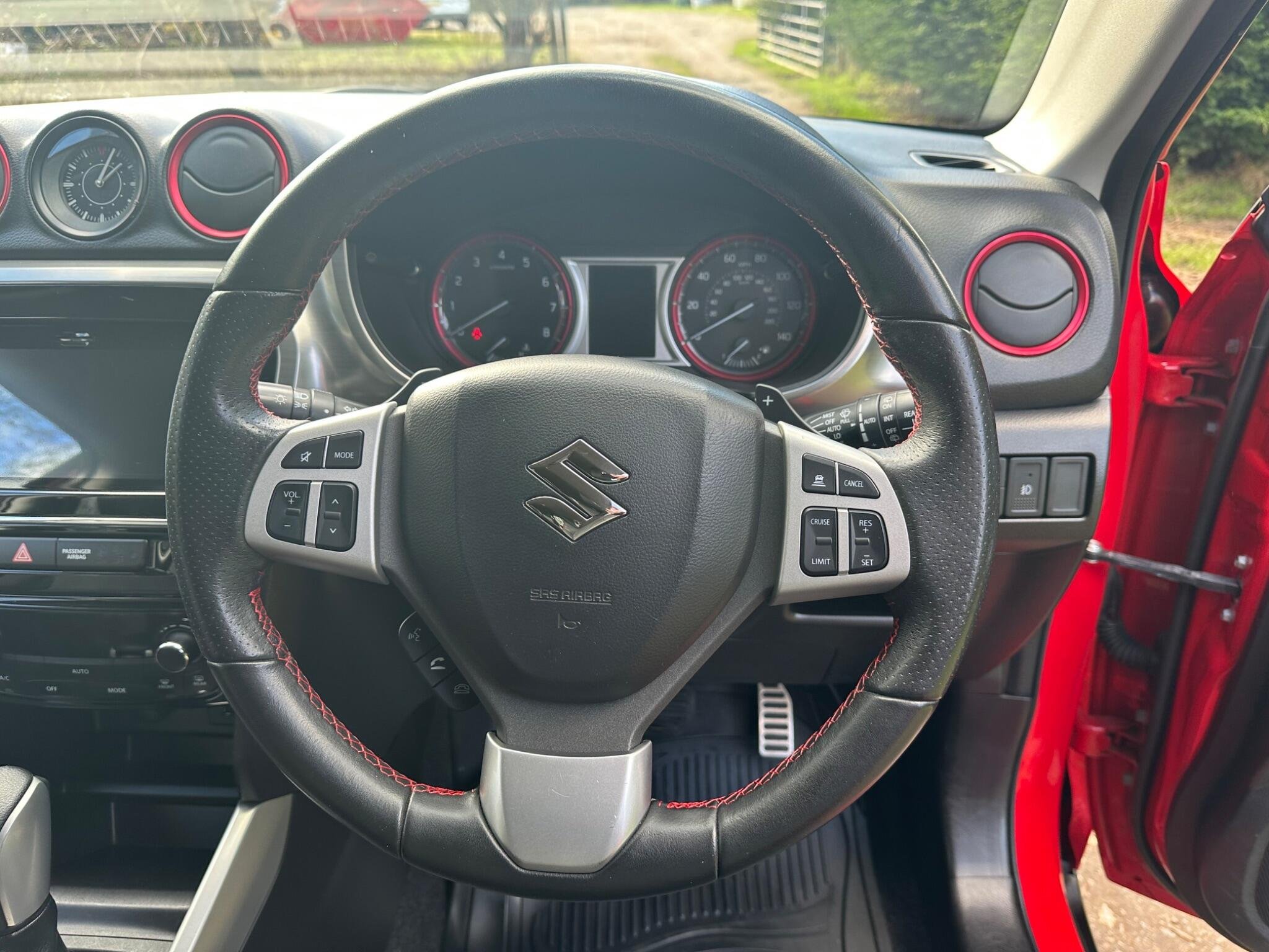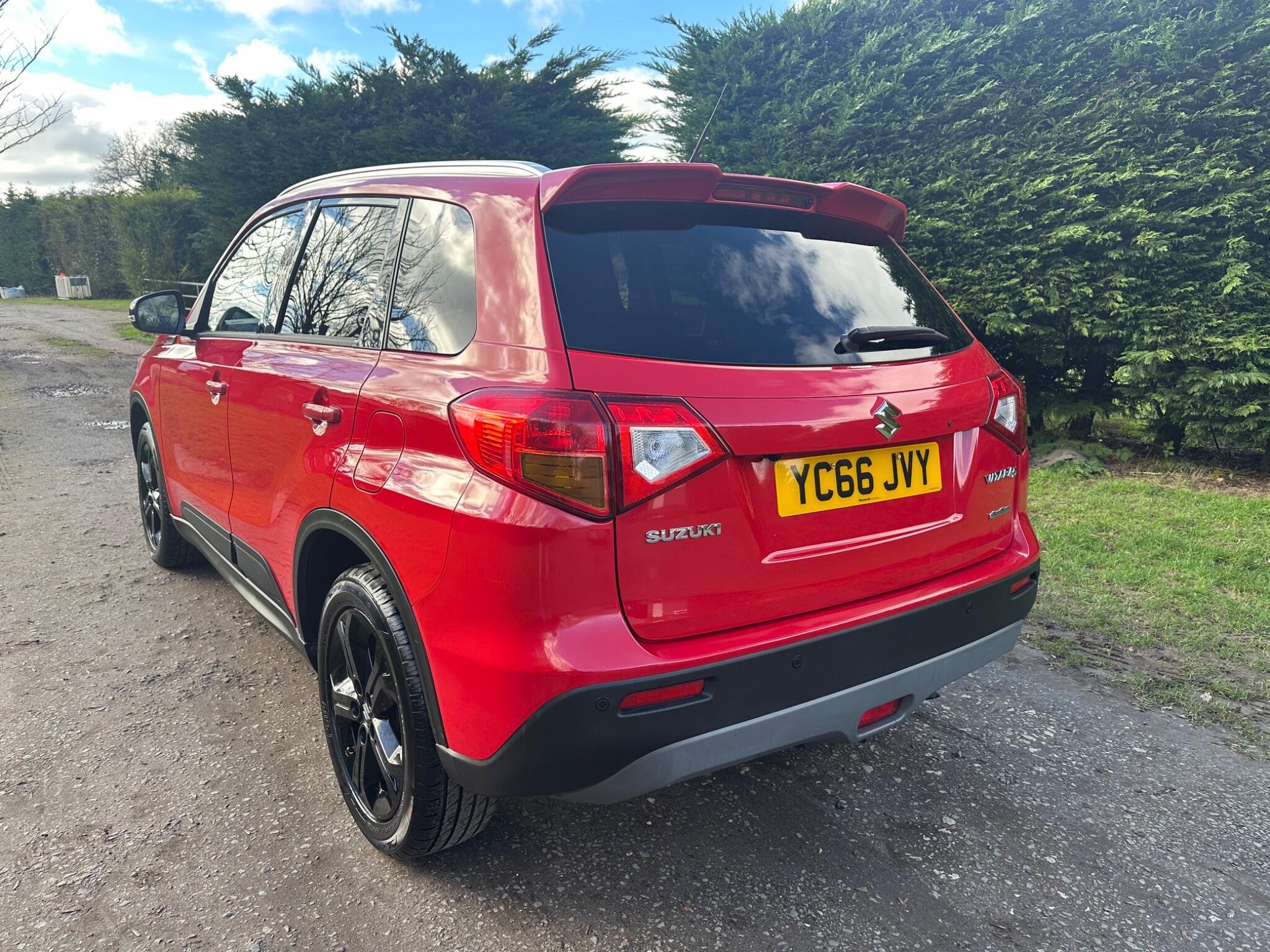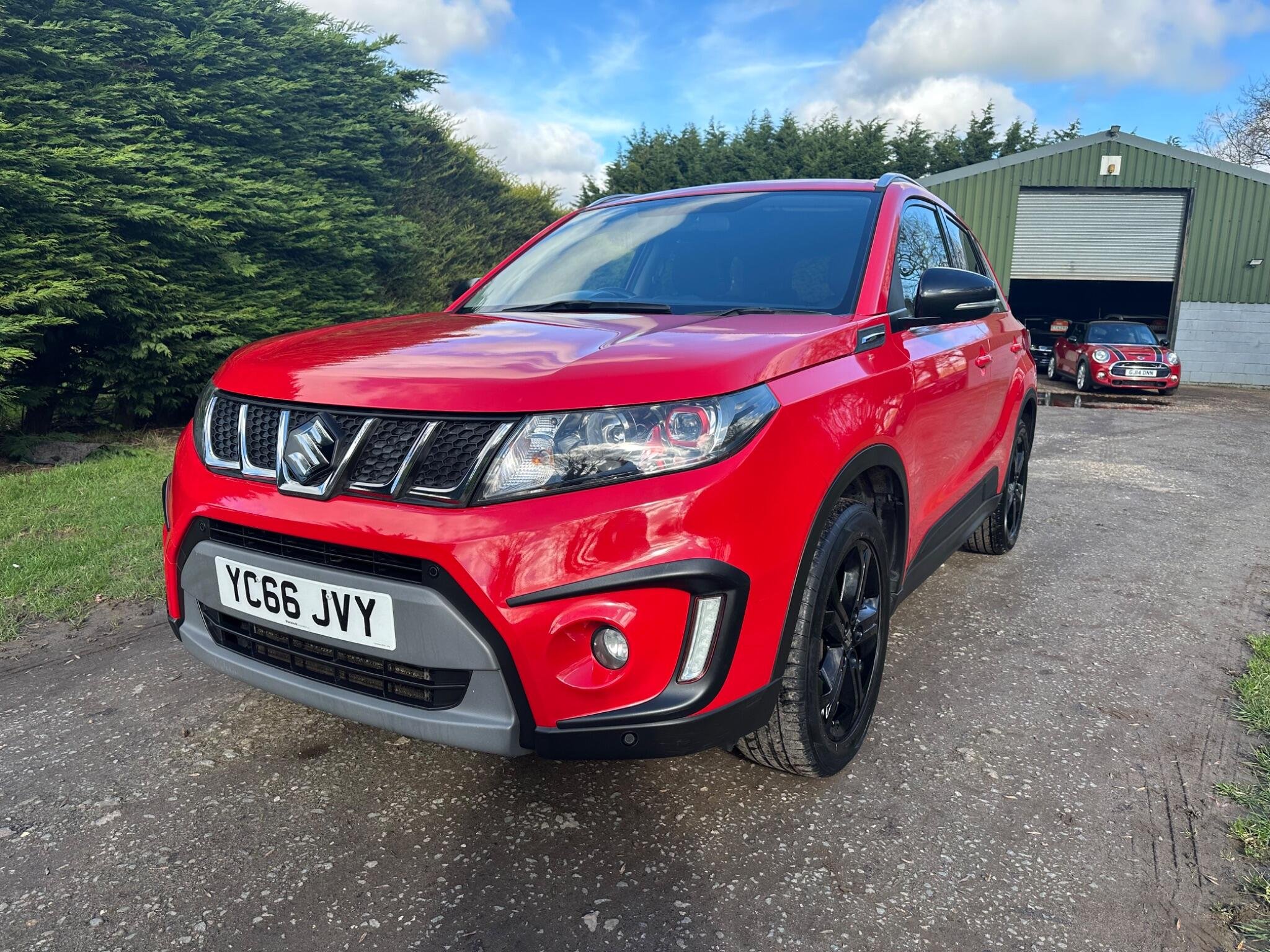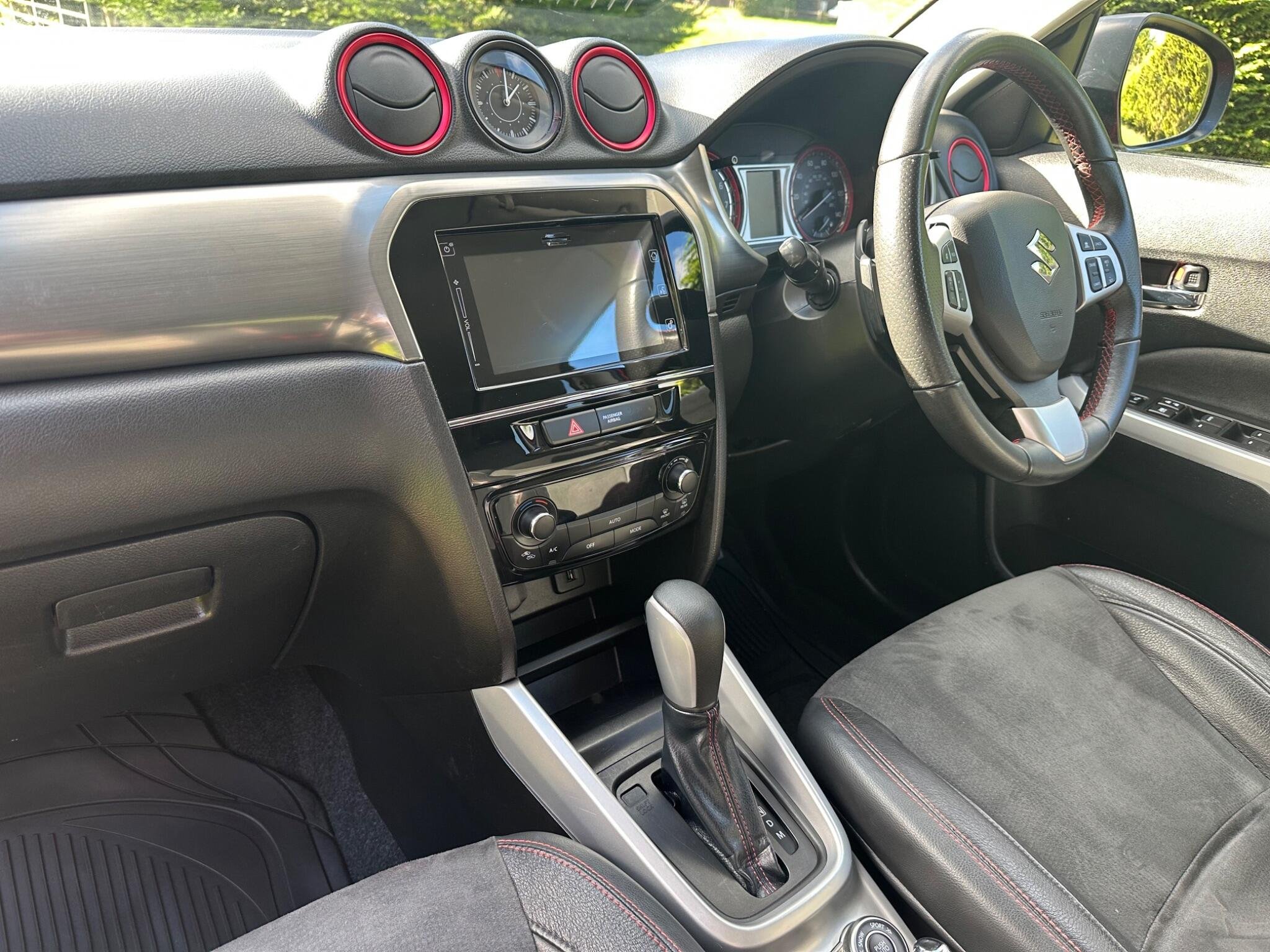This LOW MILEAGE Suzuki Vitara 1.4 Boosterjet S Auto ALLGRIP Euro 6 5door in Solid Red. The car is in excellent condition and comes with a Full Service History totalling x8 Services. The car was last Serviced in June 25, it has a new MOT with NO Advisories (as the tyre has now been replaced). It has a great specification that includes Half Leather & Suede Seats, 17in Black Gloss Alloys, Rear Camera, DAB, Adaptive Cruise Control, Removable Towbar, Bluetooth, Hill Hold, Privacy Glass, Navigation, Air Conditioning, Rear Parking Sensors, Folding Door Mirrors, Keyless Start to name just a few.